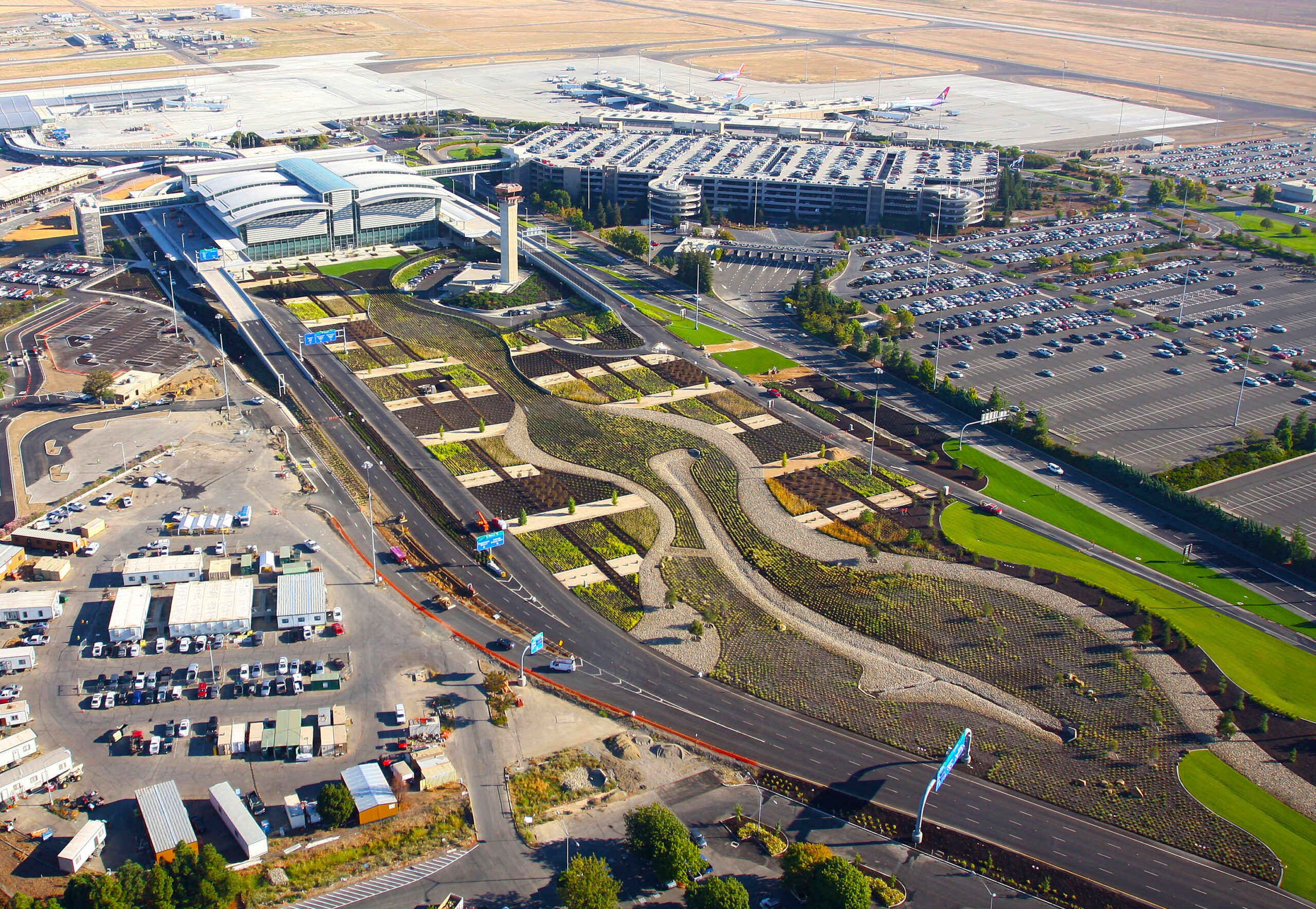 vanderToolen Associates was selected as the landscape architect for the expansion of the Sacramento International Airport. vTA was responsible for the landscape design of the new passenger Terminal B, the Terminal B garage, and all exterior areas of the project including the “Great Meadow” which will be viewed thru the terminal’s five story atrium and greet visitors with expansive views towards downtown Sacramento and the Central Valley beyond. The design team was also responsible for the landscape design of several ancillary buildings, parking lots, support service areas, interface areas to existing Terminal A and the future light rail station. This project was also awarded LEED Silver from USGBC.